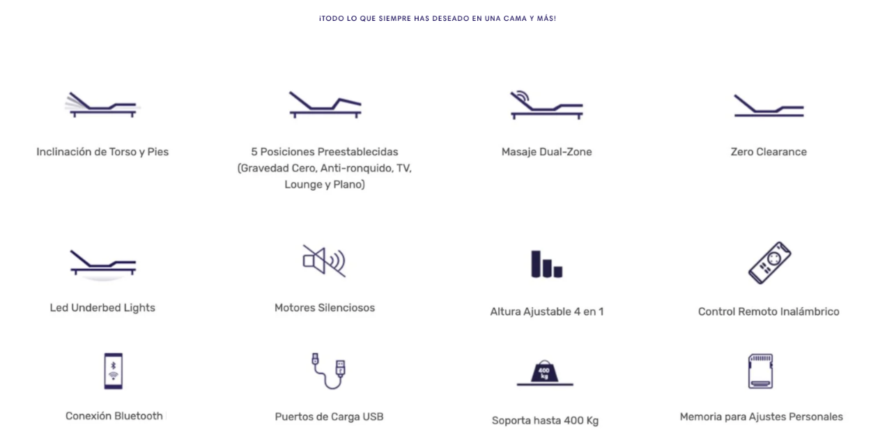 En la garantía, "base ajustable" significa la base de cama ajustable vendida por Bed Tech a un distribuidor autorizado. La base ajustable no incluye el colchón.
