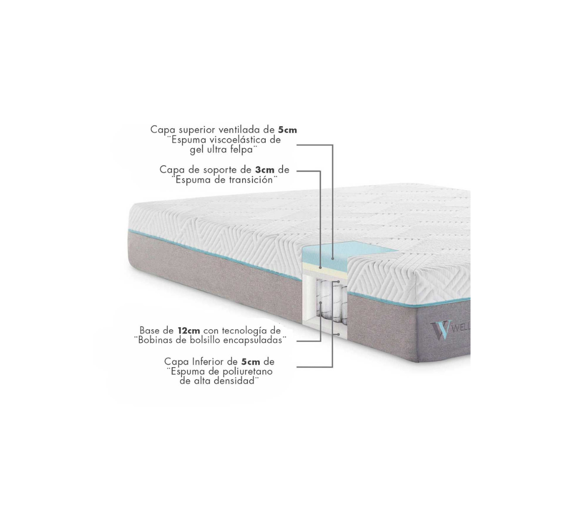 Espuma de Transición: Esta capa de espuma actúa como una zona de transición entre el Memory Foam y el soporte que brindan los resortes.